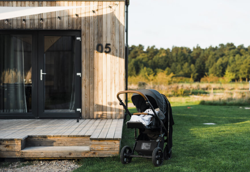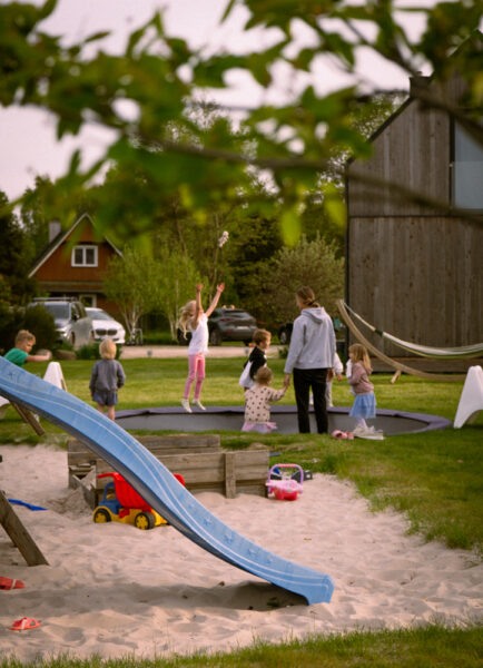 Łóżeczko z pościelą, krzesełko do karmienia, wanienka, bramka zabezpieczająca schody. Tarasy bez drzazgi, czyściutki trawnik do raczkowania i stawiania pierwszych kroków. Piaskownica, drewniany domek dla najmłodszych, mała zjeżdżalnia i huśtawki. A do tego duuużo czystego, morskiego powietrza, które wzmocni odporność małych ludzi. I pozwoli na długie drzemki. Bobasy też u nas odpoczywają.