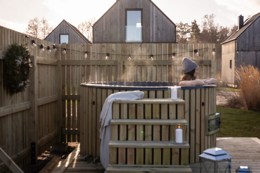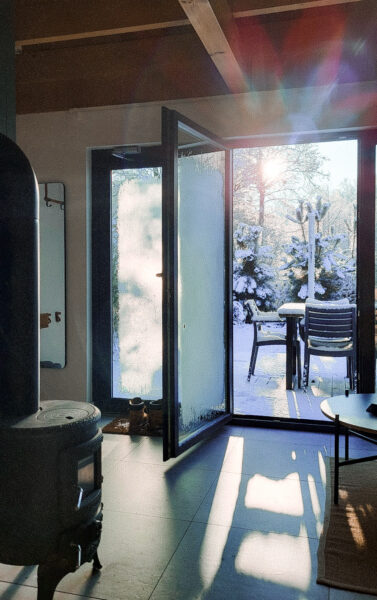 Wieczorem zaś: ciepły kominek w domku, gorąca herbata, książka lub ulubiona muzyka, widok z panoramicznych okien na las, a jeśli masz ochotę – sauna lub jacuzzi pod gwiazdami. To idealne warunki, by na nowo poczuć rytm „slow”.