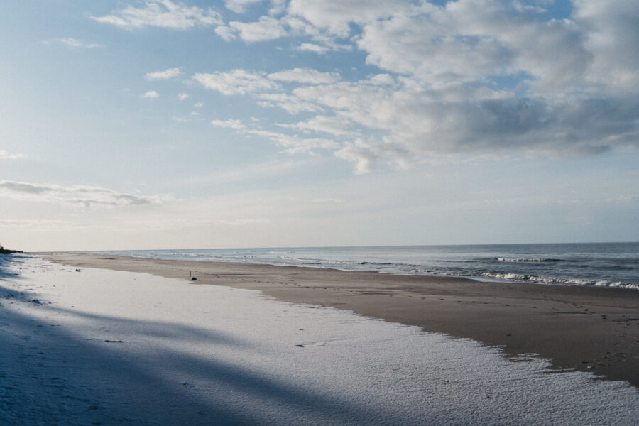 Pusta plaża – cisza, spokój i szum morza zamiast gwaru. Zimowe spacery brzegiem Bałtyku są niezwykle klimatyczne, a powietrze jest bogate w dobroczynny jod bardziej niż o innej porze roku.
